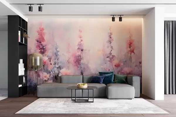 Fototapeedid Värvilised metsalilled akvarellistiilis: lillad, moonid, martsikad Nr w09038