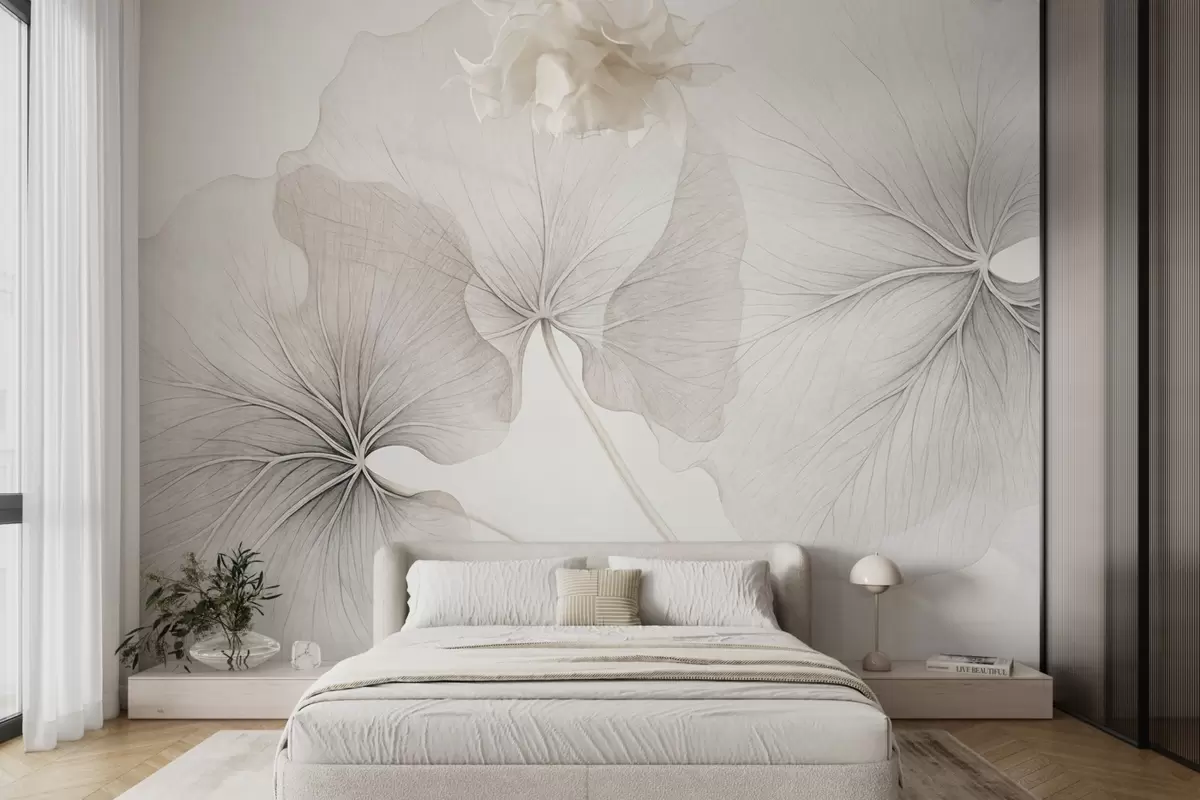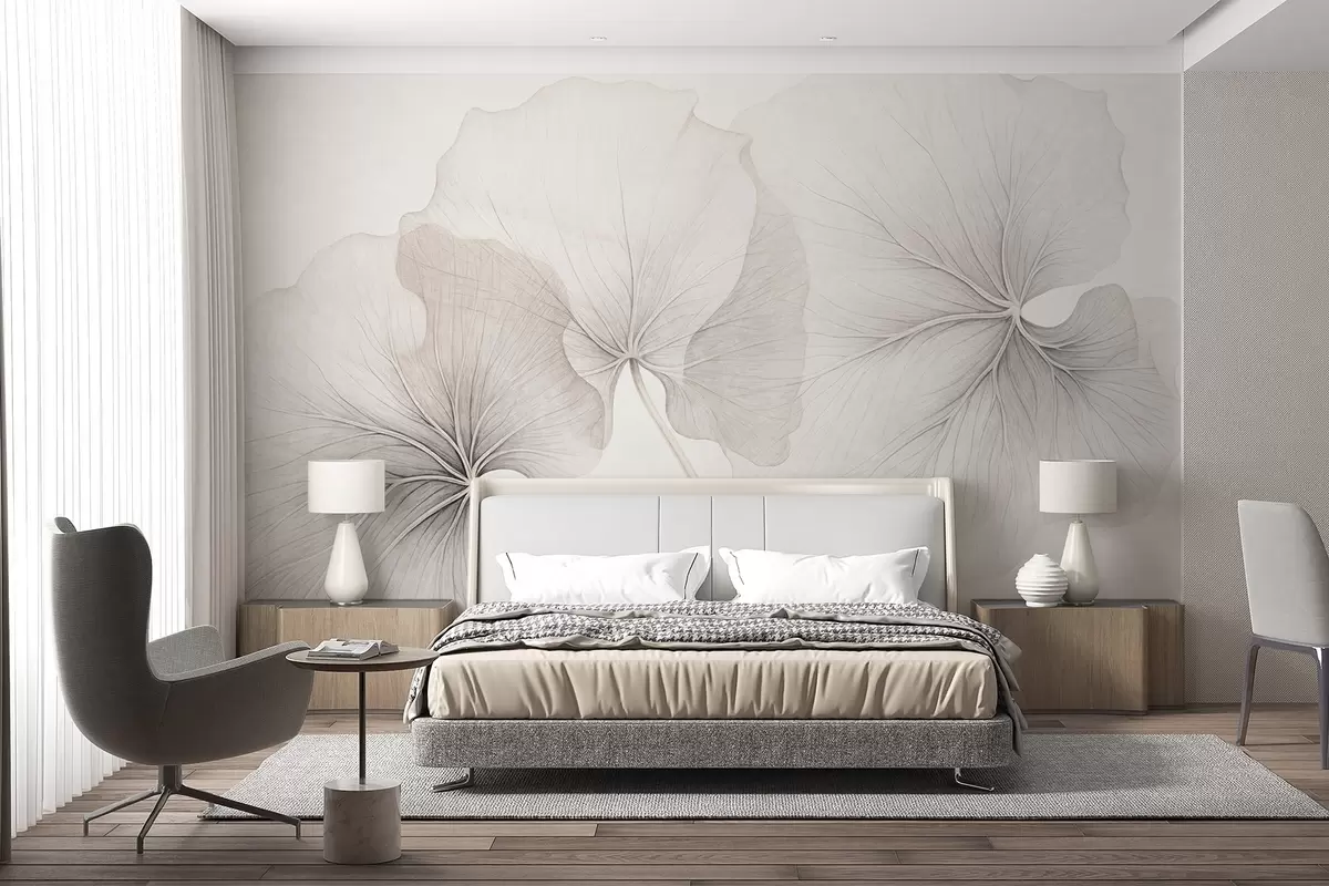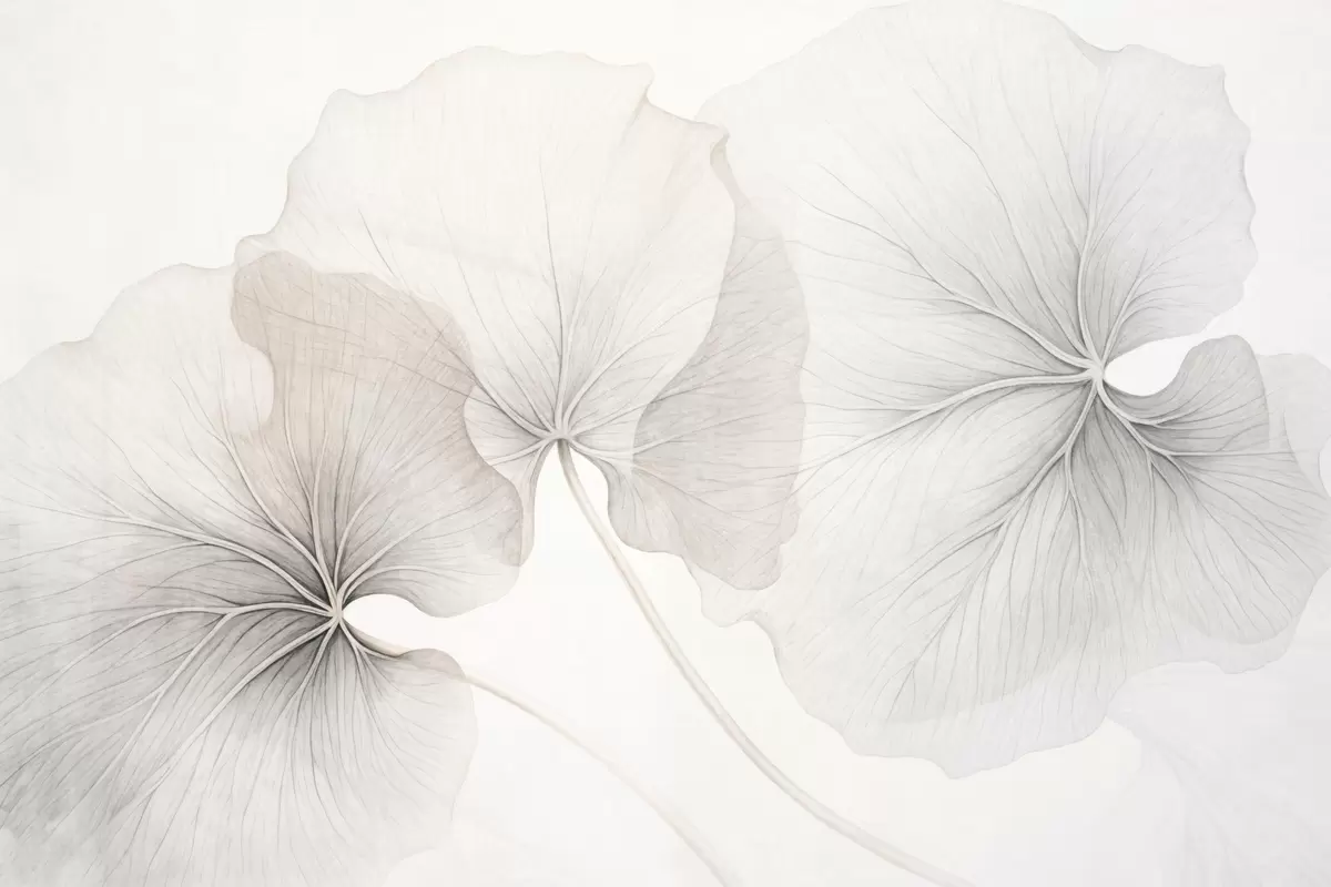 Fototapeedid Kolm läbipaistvat, nähtavate soontega, müratekstuuriga, veidi kattuvate õhukeste varrega lehte valgel taustal Nr w09052