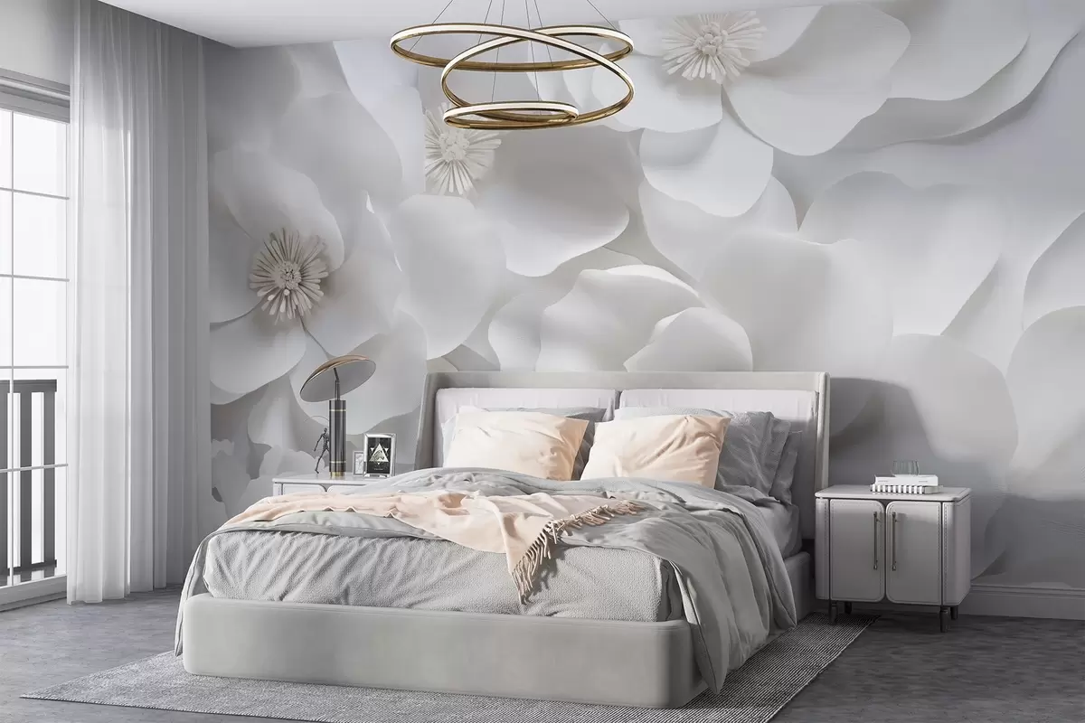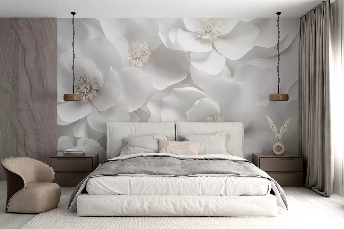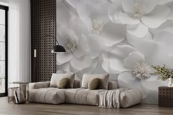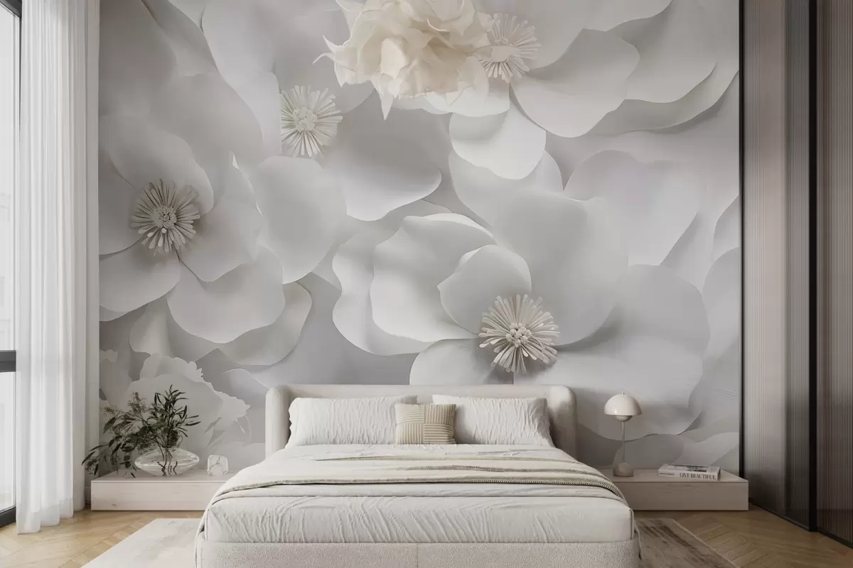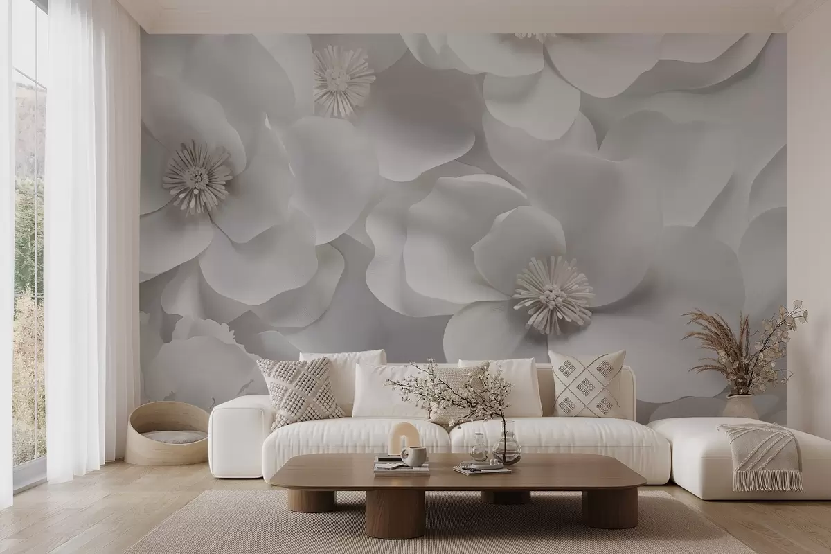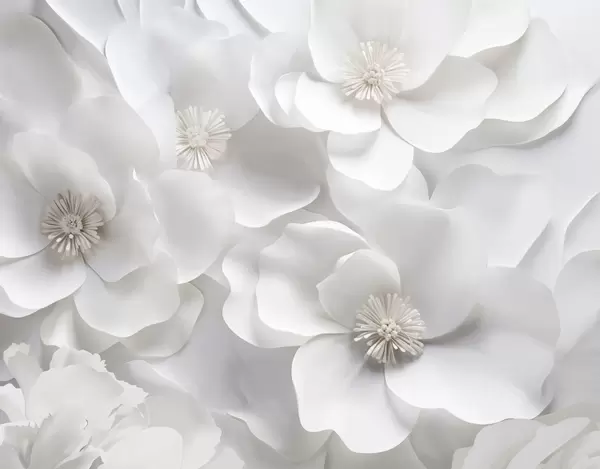 Fototapeedid Valged õrnade kroonlehtedega lilled, mis on paigutatud tihedasse kobarasse, tekitades puhtuse ja elegantsi tunnet valgel taustal Nr w09053