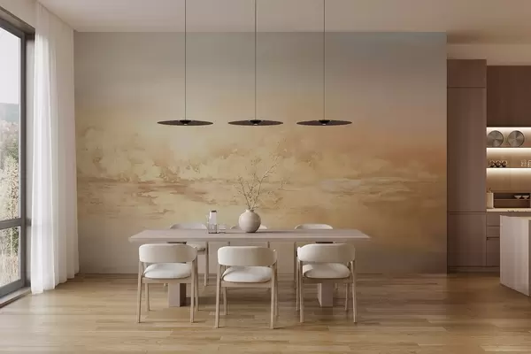 Fototapeedid Abstraktne tekstuurne maastik soojade värvide, pehme ja unenäolise atmosfääri ning oranžide, kollaste ja valgete toonide seguga Nr w09063