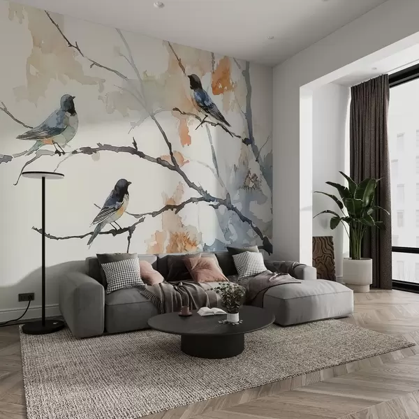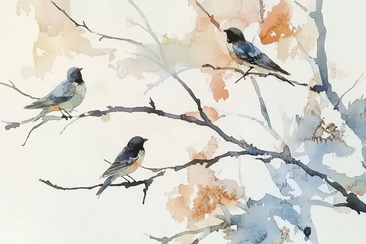 Fototapeedid Linnud puuoksadel akvarellistiilis Nr w09064