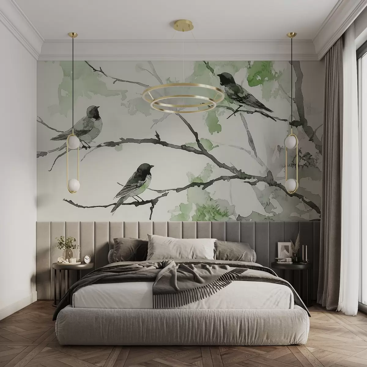 Fototapeedid Linnud puuoksadel akvarellistiilis Nr w09064v3