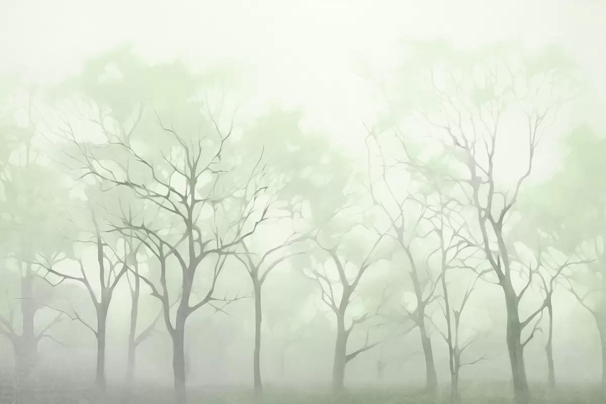 Fototapeedid Ühevärvilised vintage puud udus Nr w09065v1