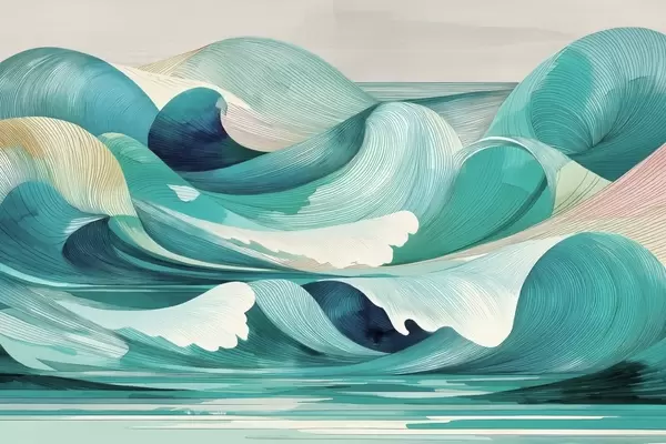 Fototapeedid Sinise ja türkiisi värvi lained koos joontega Nr w09078