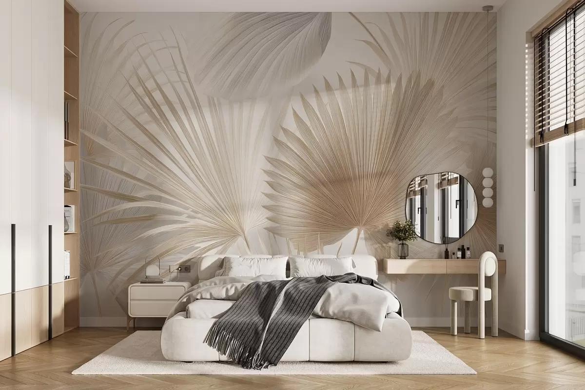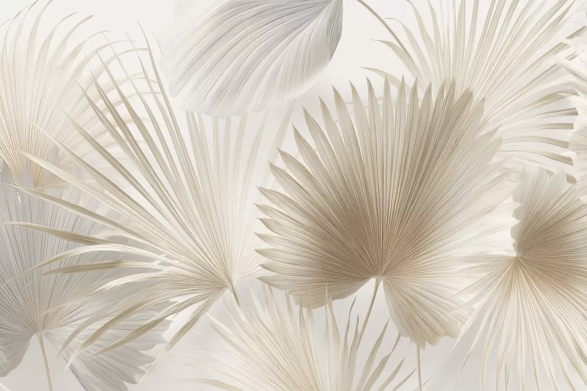 Fototapeedid Pehmed troopilised lehtede fännid helebeeži ja sinakate toonidega Nr w09084
