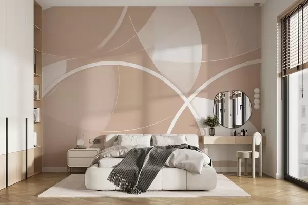 Fototapeedid Geomeetriline abstraktsioon beeži ja roosa toonides ringide ja poolringidega Nr w09085