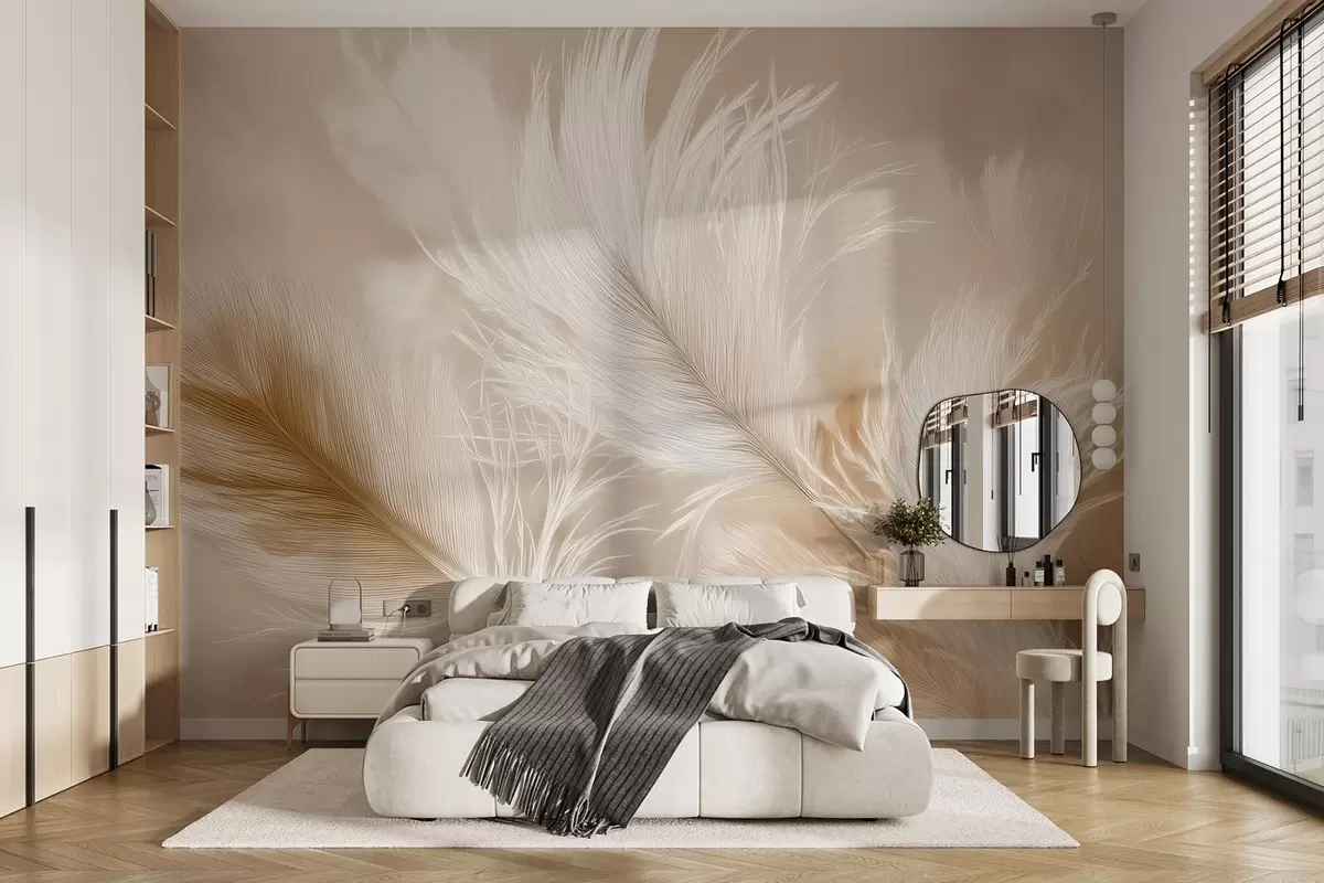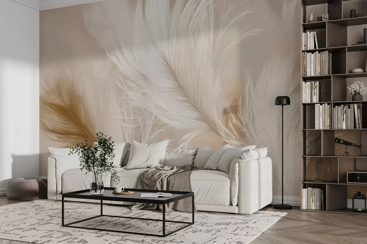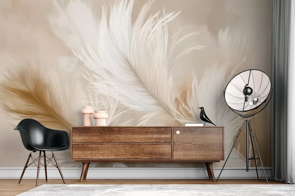 Fototapeedid Lendavad õhulised suled beežil taustal Nr w09102