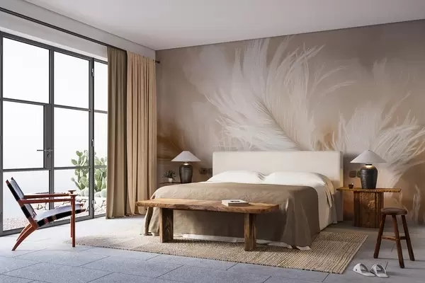 Fototapeedid Lendavad õhulised suled beežil taustal Nr w09102