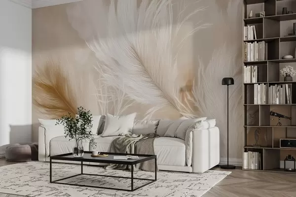 Fototapeedid Lendavad õhulised suled beežil taustal Nr w09102