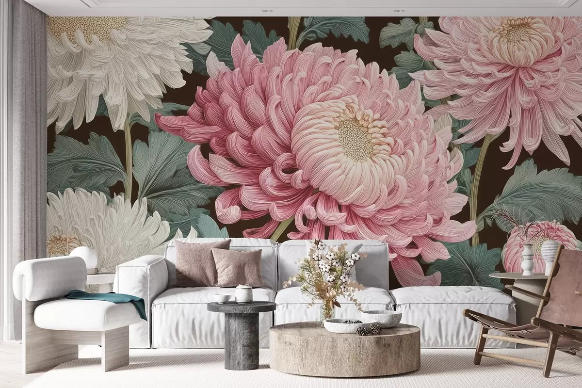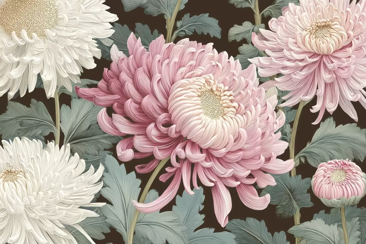 Fototapeedid Roosad ja valged suured orhideed lehtedega tumedal taustal Nr w09125