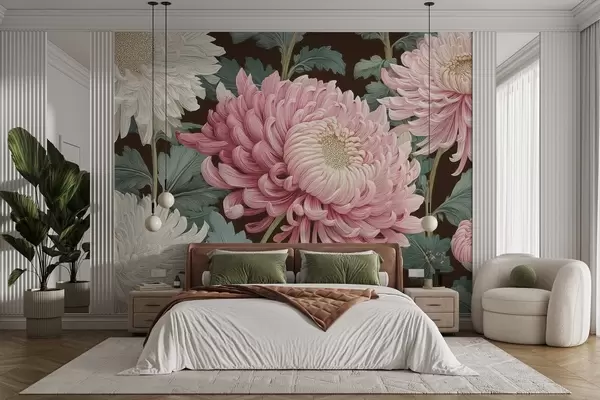 Fototapeedid Roosad ja valged suured orhideed lehtedega tumedal taustal Nr w09125