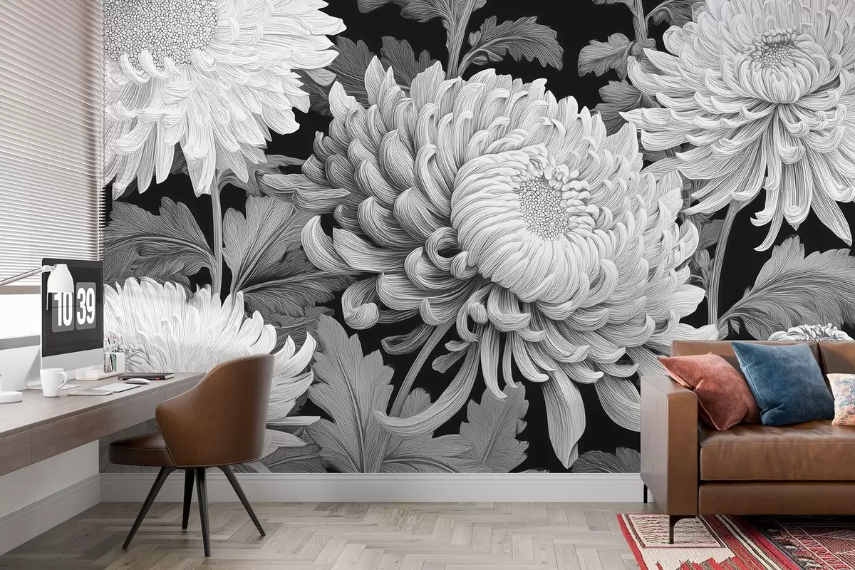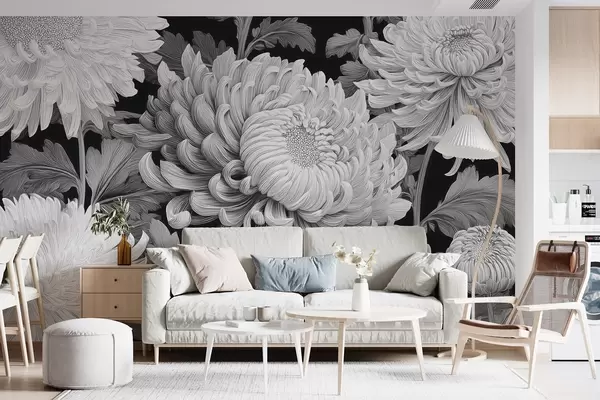 Fototapeedid Must-valged suured lehtedega orhideed Nr w09125v1