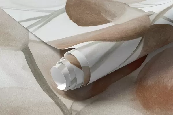 Fototapeedid Pruunide lehtede ja okste tekstuurne akvarellmaal, pehmed värvid, õrnad detailid valgel taustal Nr w09133