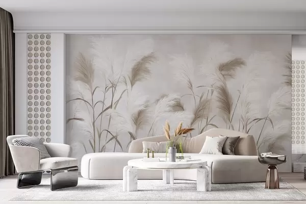 Fototapeedid Elegantne pampasrohi õitseb halli ja pruuni toonides Nr w09150