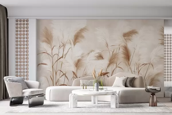 Fototapeedid Elegantne pampasrohi õitseb pehmetes beežides ja piimjas toonides Nr w09150v1