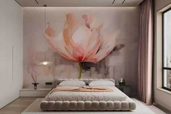 Fototapeedid Roosa tulp, õlimaalide imitatsioon pehmete pintslitõmmetega, abstraktne taust pastelsete hallide ja beežide toonidega Nr w09187