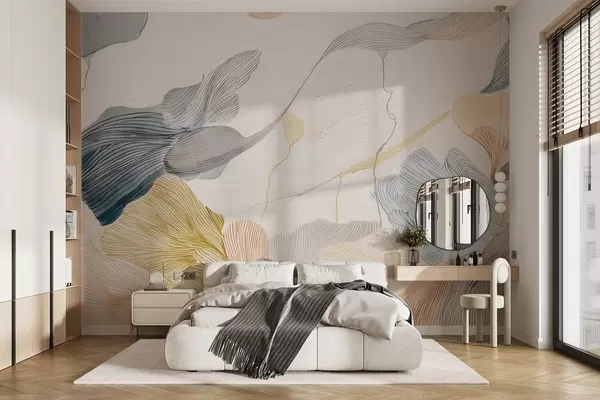 Fototapeedid Abstraktsed graafilised lehed soojades ja jahedates pastelsetes toonides Nr w09222v1