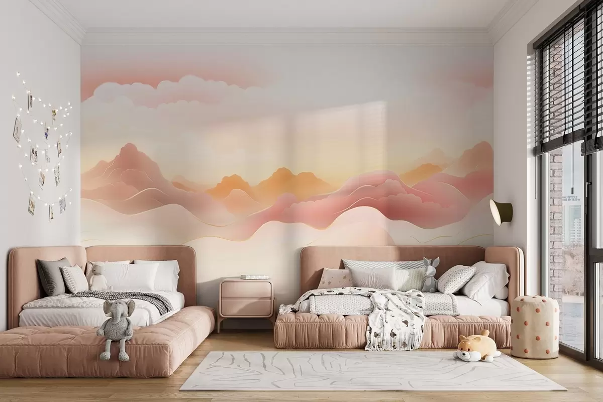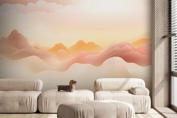 Fototapeedid Udusad mäed sooja päikesetõusu all Nr w09242