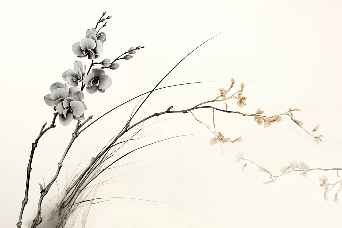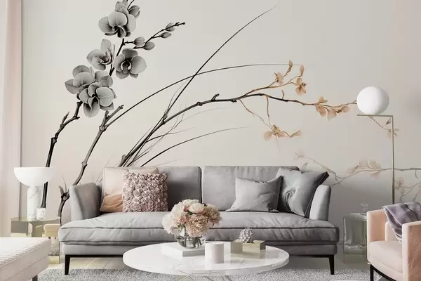 Fototapeedid Minimalistlik orhidee oksa pehmete seepia ja hallide toonidega Nr w09250