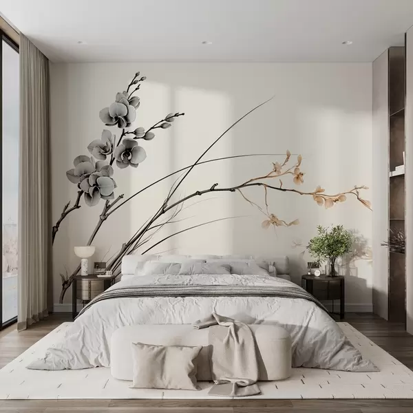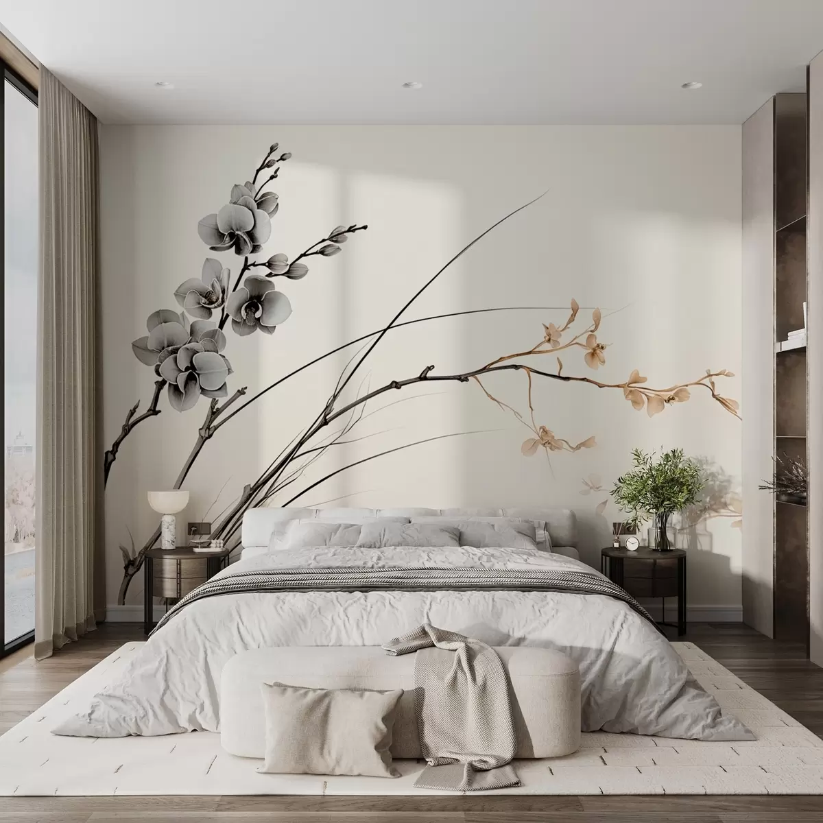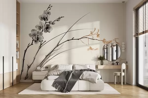Fototapeedid Minimalistlik orhidee oksa pehmete seepia ja hallide toonidega Nr w09250