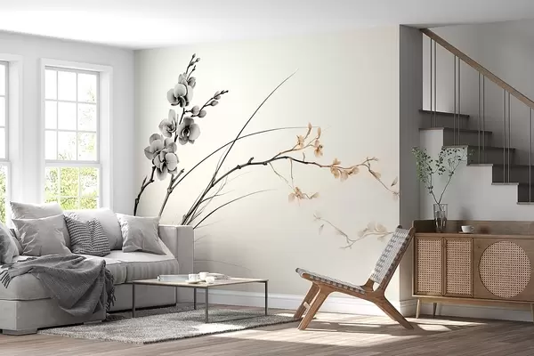 Fototapeedid Minimalistlik orhidee oksa pehmete seepia ja hallide toonidega Nr w09250