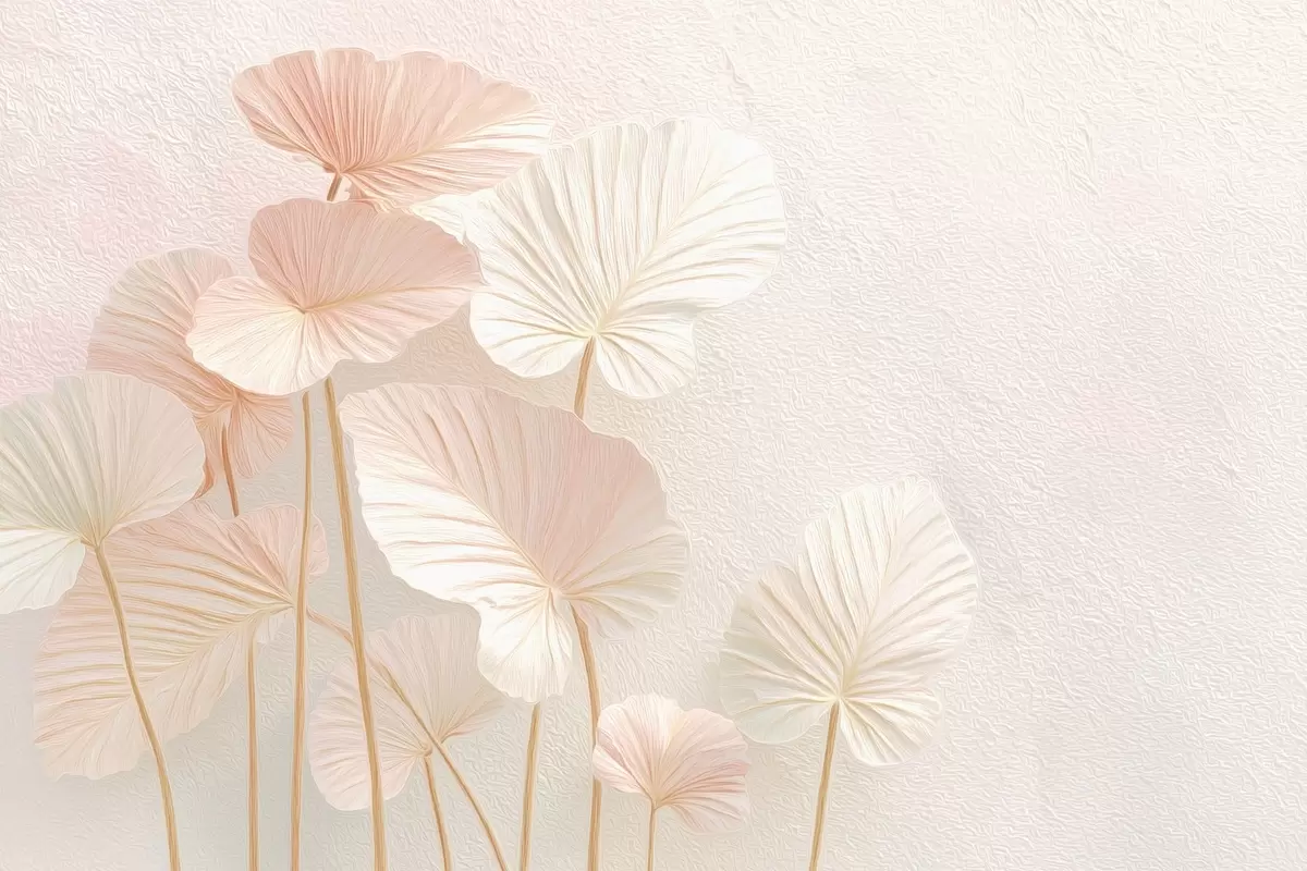 Fototapeedid Elegantsed suured troopilised lehed õrna roosa värviga Nr w09252v1