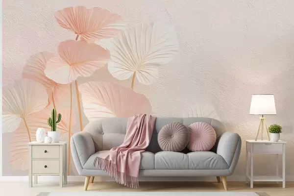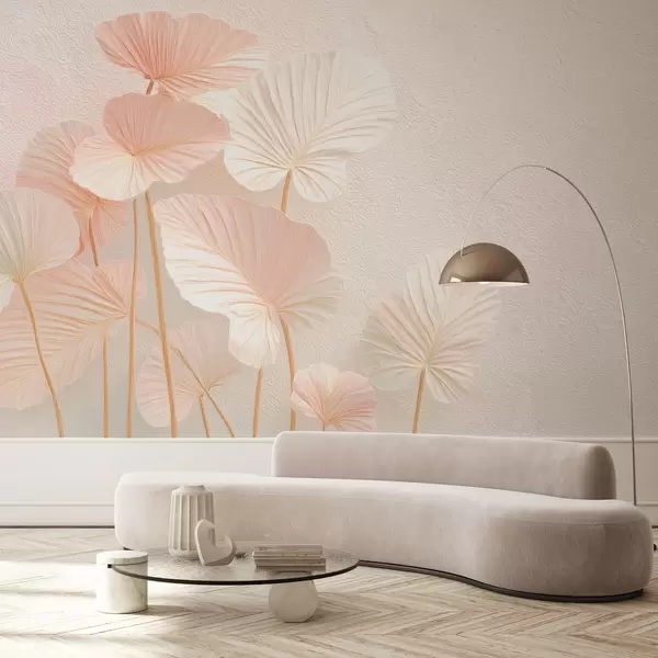 Fototapeedid Elegantsed suured troopilised lehed õrna roosa värviga Nr w09252v1