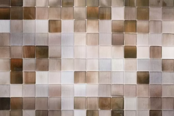 Fototapeedid Ruudukujulised mosaiikplaadid pruunide, beežide ja valgete toonidega, abstraktse rööpmelise ja mürarikka tekstuuriga Nr w09269