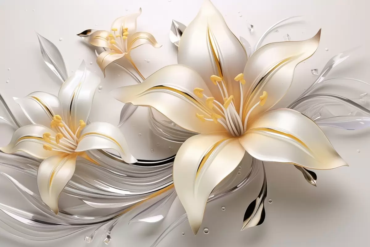 Fototapeedid Kollased liiliad 3D efektiga heledal taustal Nr w09278