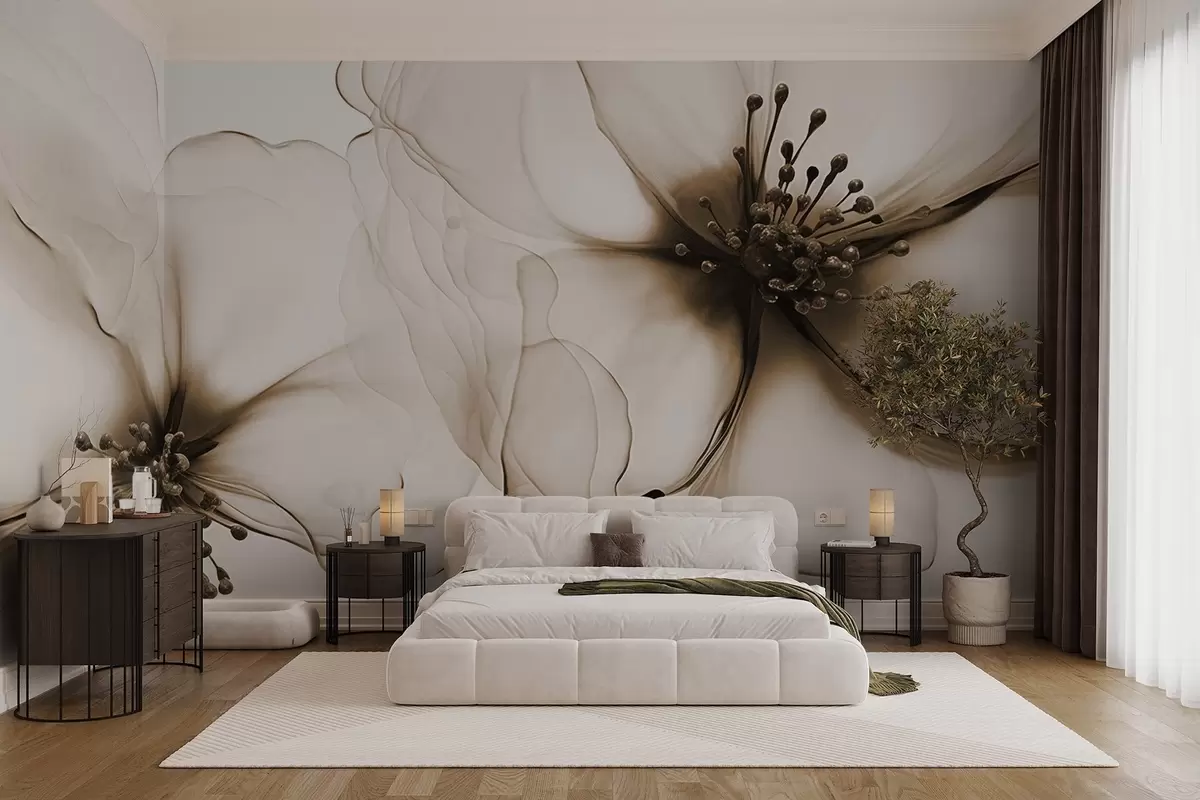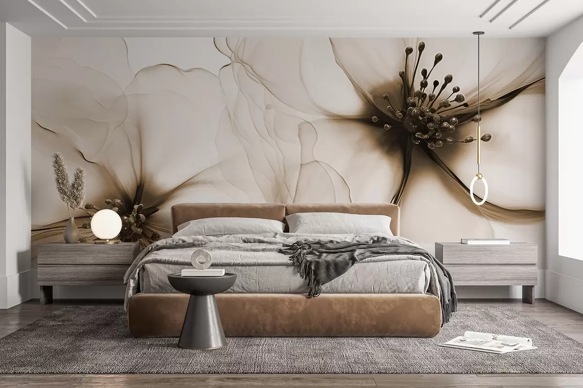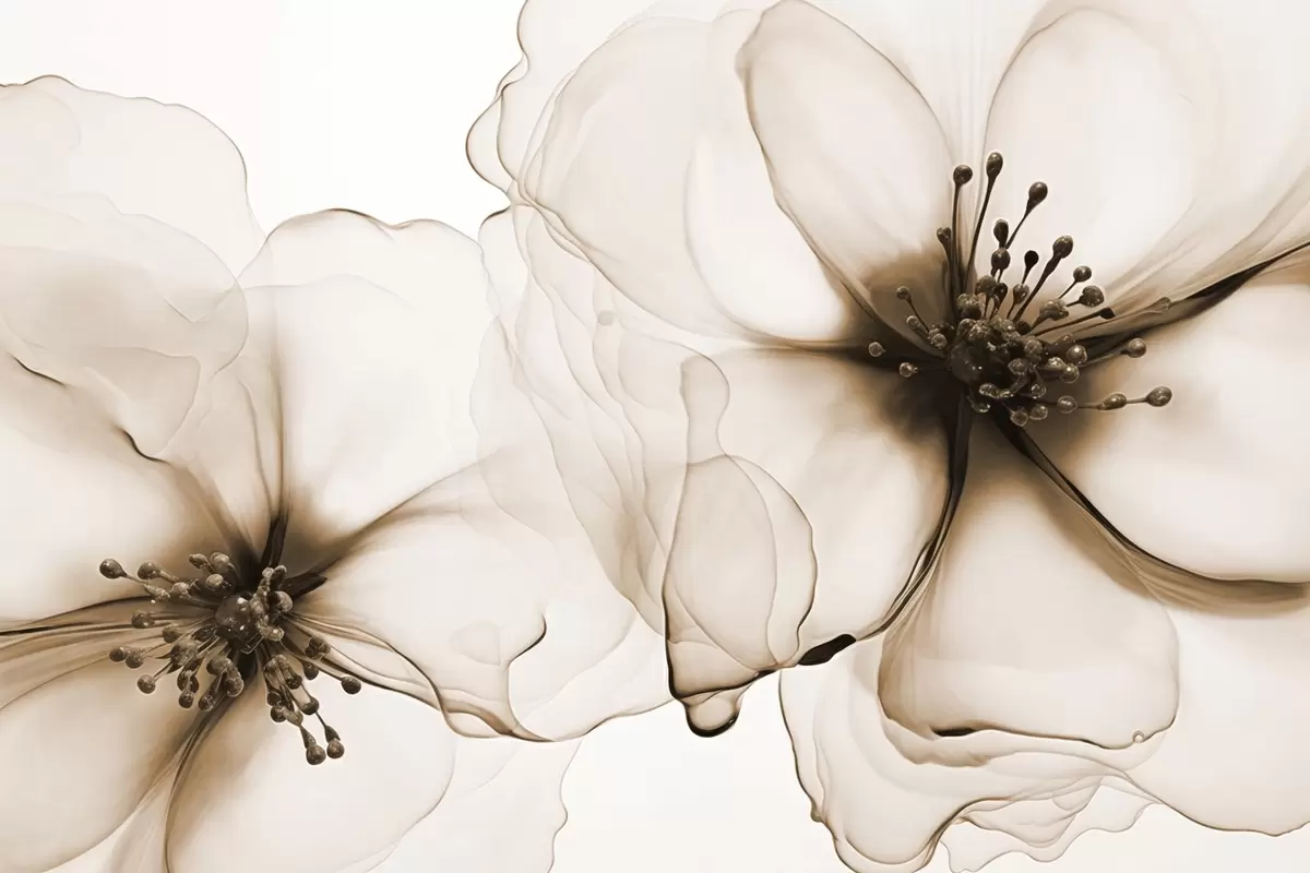 Fototapeedid Kaks läbipaistva tekstuuriga pruuni õit, millel on nähtavad õied, kattuvad õrnad kroonlehed ja pehme voolav tekstuur Nr w09295