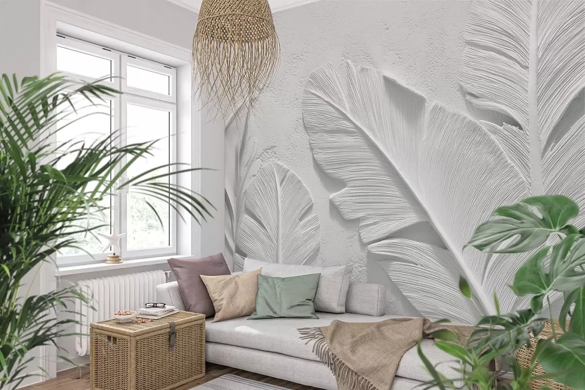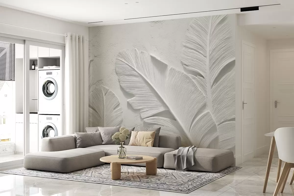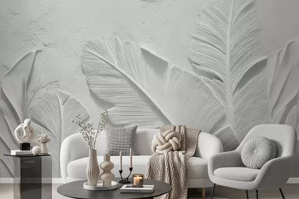 Fototapeedid Tekstureeritud hallid lehed faux krohvi reljeefiga taustal Nr w09307