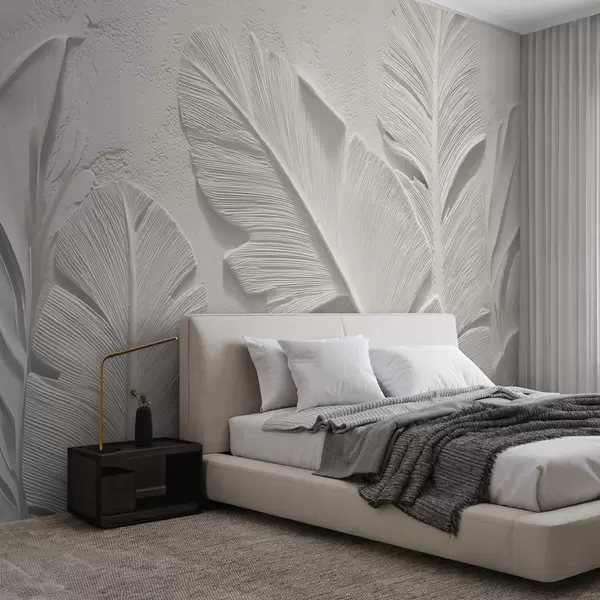 Fototapeedid Tekstureeritud hallid lehed faux krohvi reljeefiga taustal Nr w09307