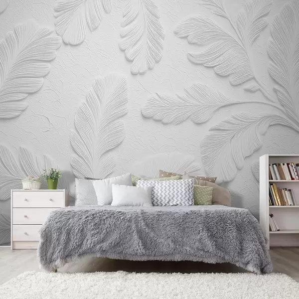 Fototapeedid Reljeefsed lehed halli värvi, pragunenud tekstuuriga efektiga Nr w09309v1