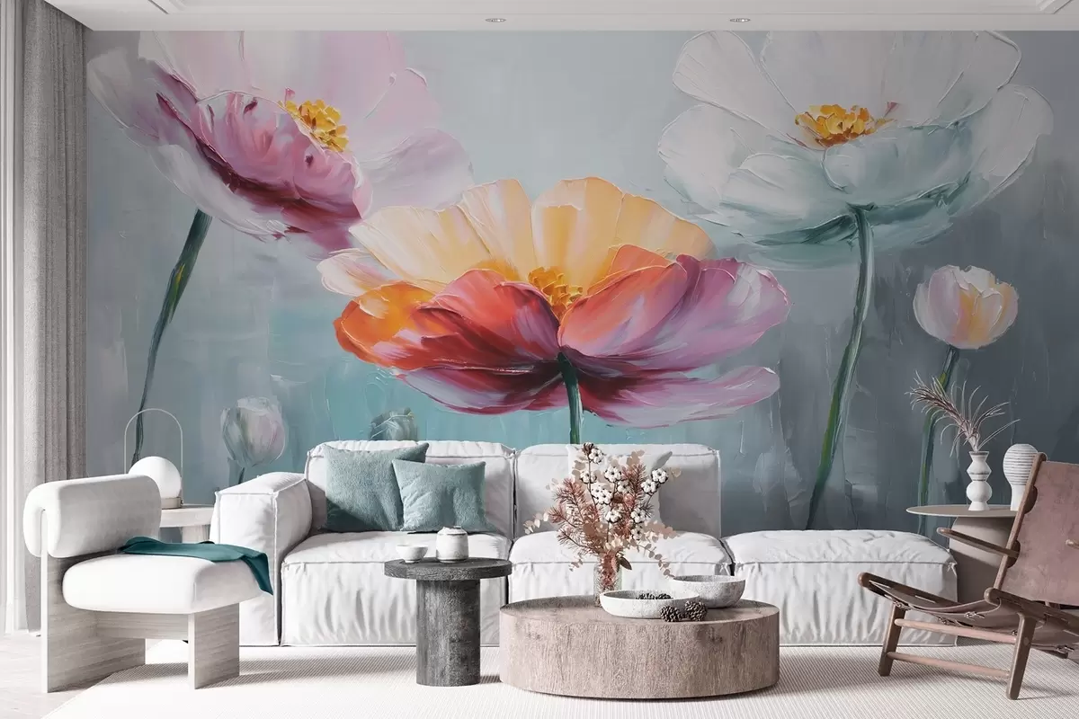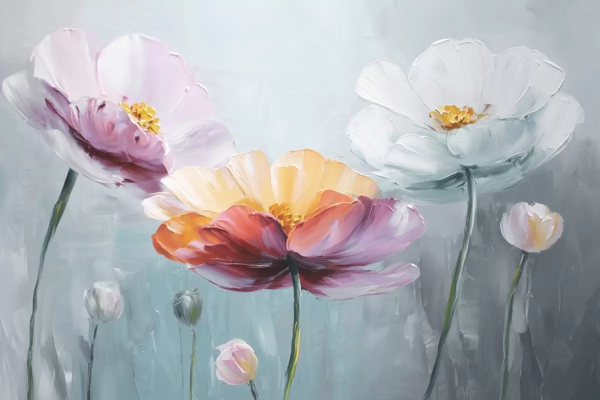 Fototapeedid Heledad lilled õlimaal tehnikas sinisel taustal Nr w09310
