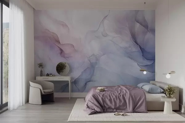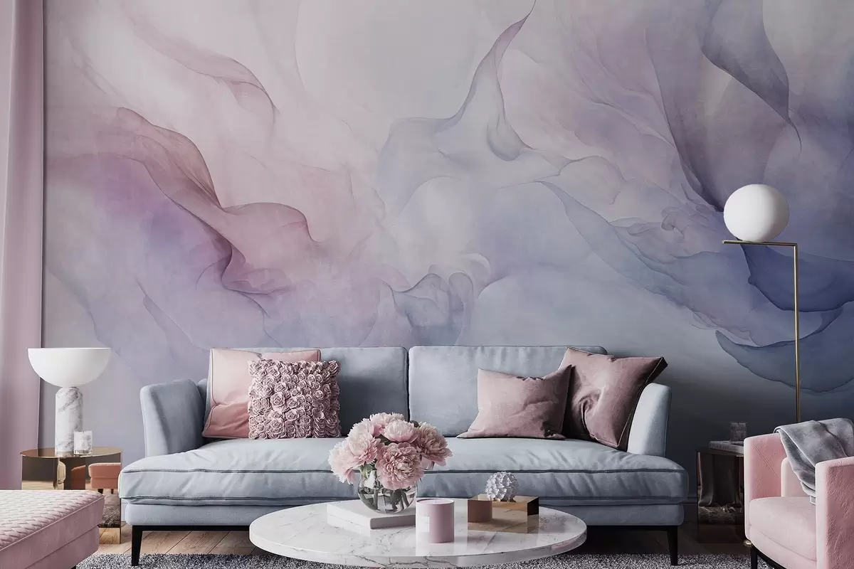 Fototapeedid Abstraktne tekstuurne maal, millel on voolavad roosa, lilla ja sinise pastelsed toonid, mis loovad pehme efekti Nr w09318