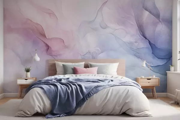 Fototapeedid Abstraktne tekstuurne maal, millel on voolavad roosa, lilla ja sinise pastelsed toonid, mis loovad pehme efekti Nr w09318
