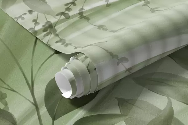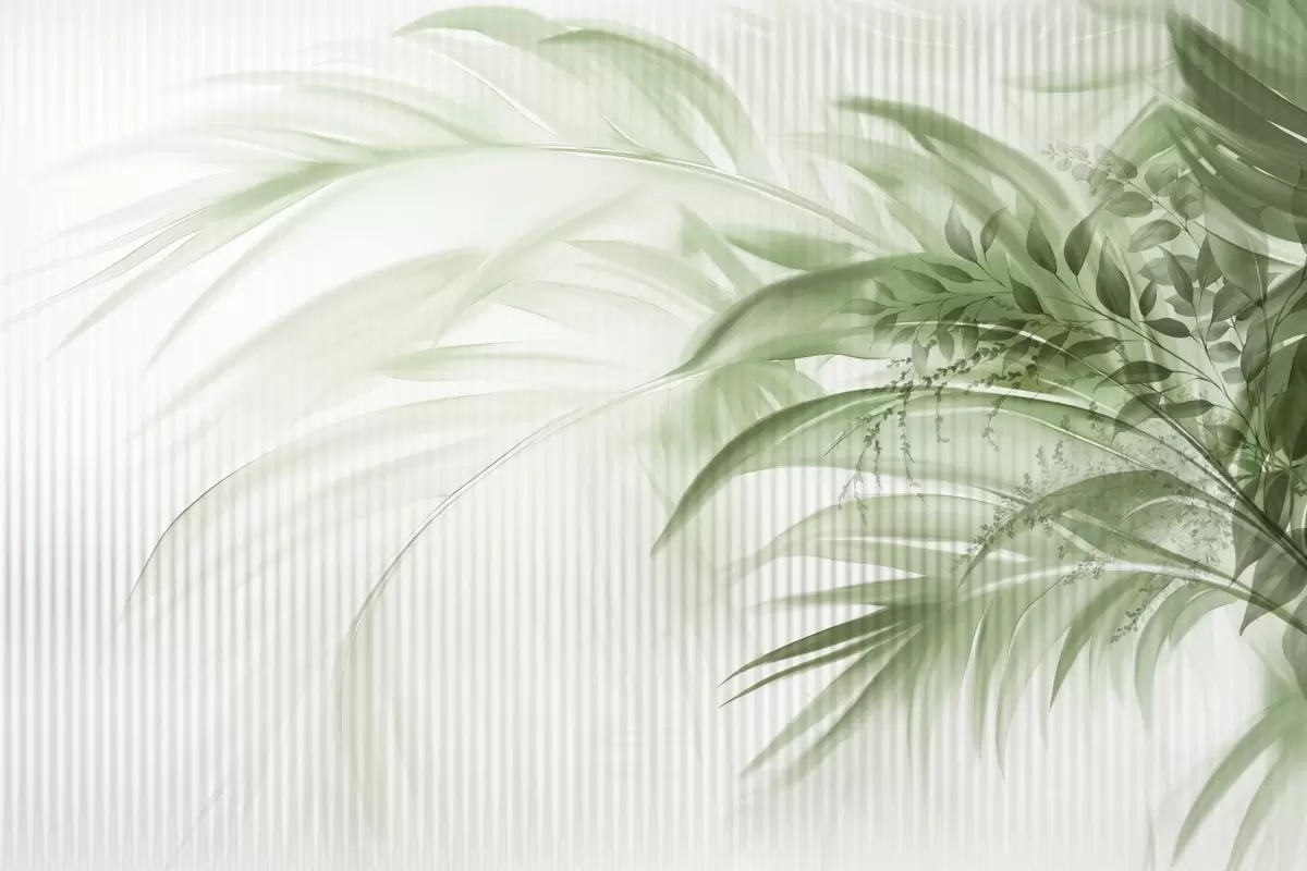 Fototapeedid Palmi troopilised rohelised lehed valge triibulise taustaga, pehme valgustus, õrnad pintslitõmbed, orgaanilised vormid Nr w09343