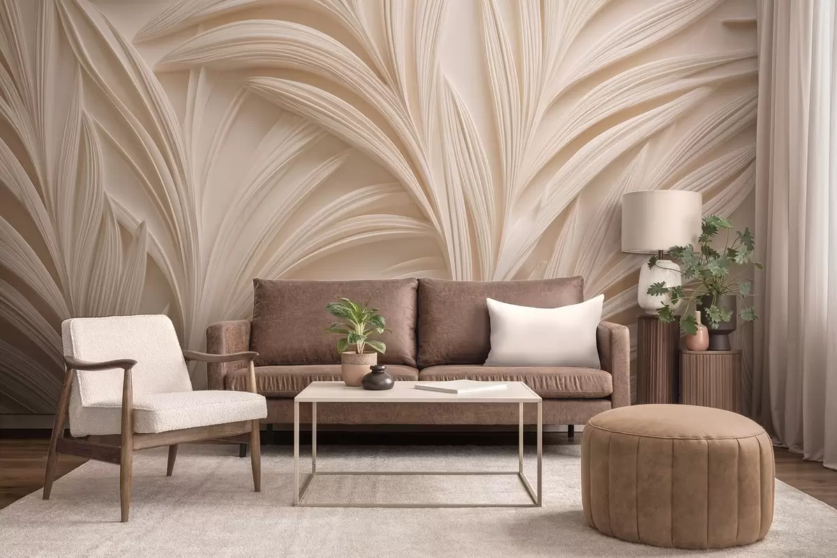 Fototapeedid Dekoratiivsed beežid lehed 3D stiilis Nr w09351