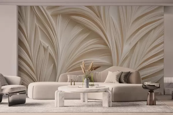 Fototapeedid Dekoratiivsed beežid lehed 3D stiilis Nr w09351