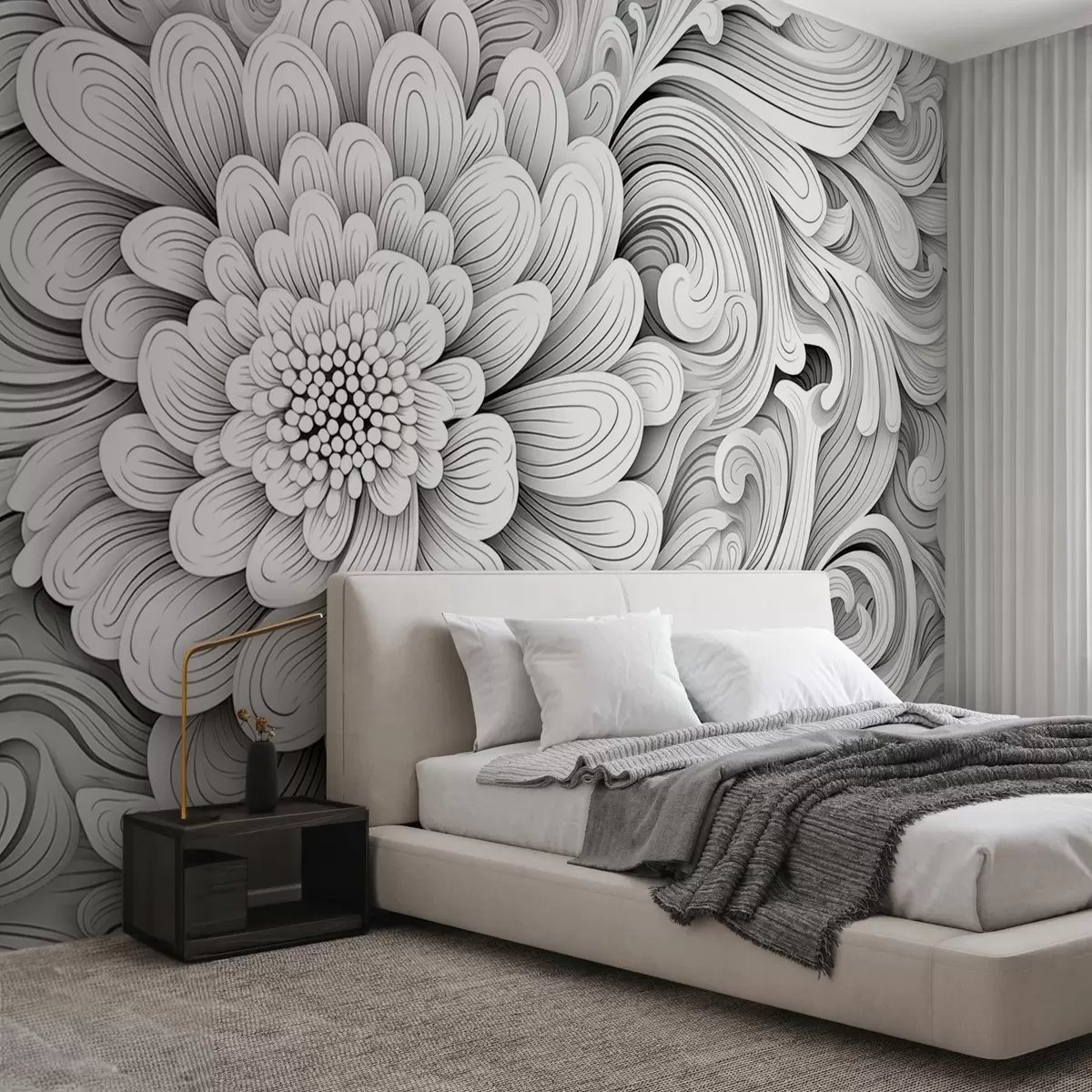 Fototapeedid Dekoratiivne muster lillede ja keerdude kujul, mustvalge ja mustriga Nr w09355