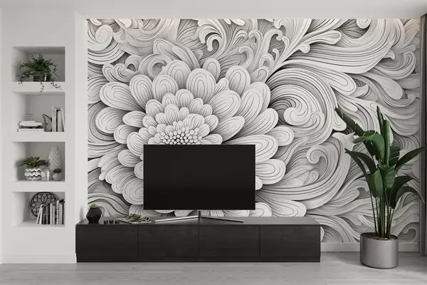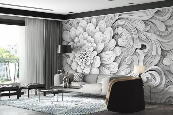 Fototapeedid Dekoratiivne muster lillede ja keerdude kujul, mustvalge ja mustriga Nr w09355