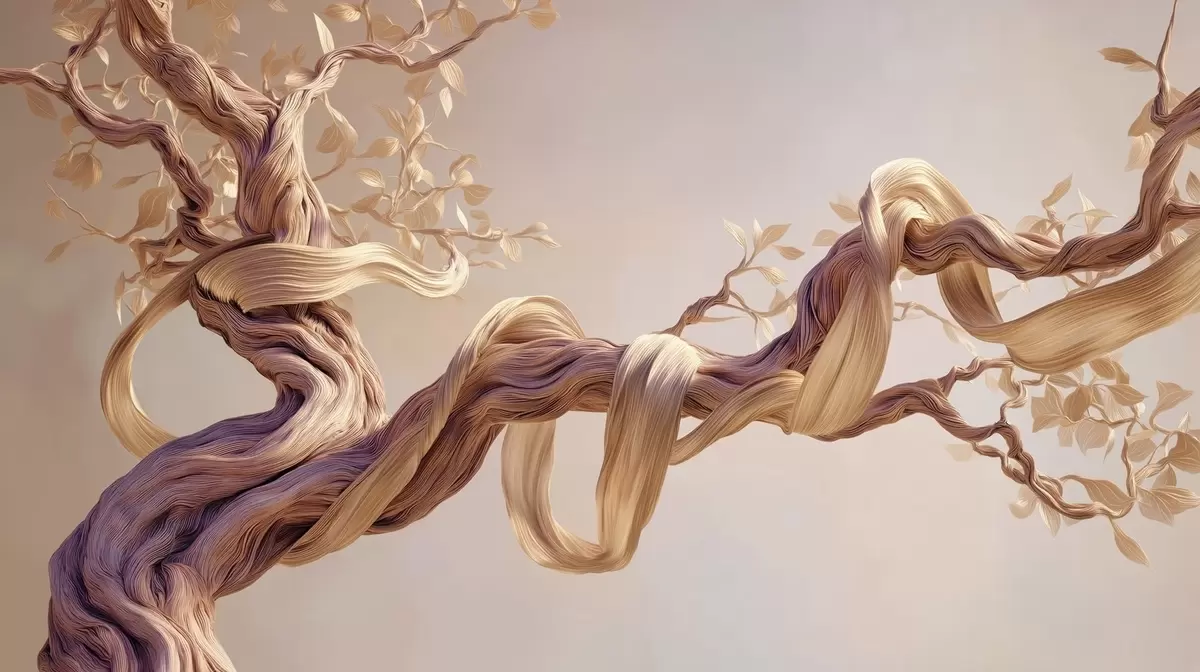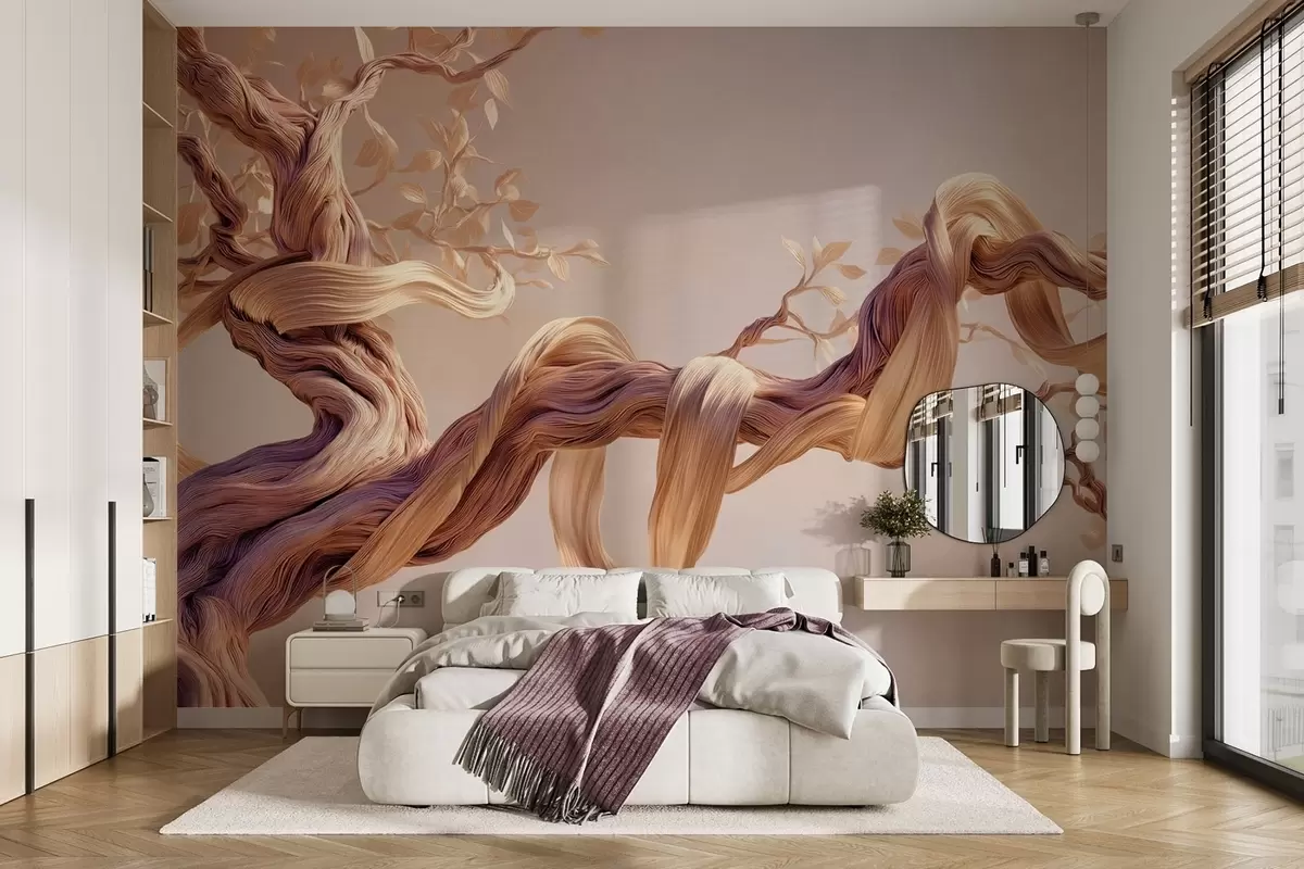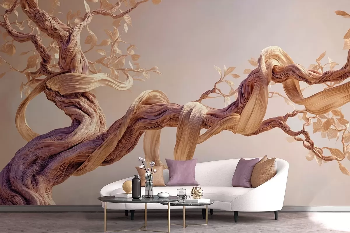 Fototapeedid Väänatud puutüvi dekoratiivsete lehtedega Nr w09360