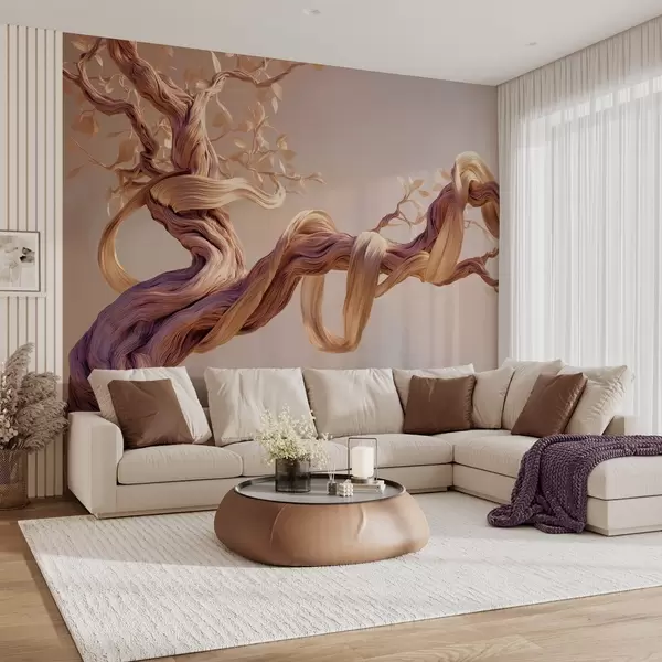 Fototapeedid Väänatud puutüvi dekoratiivsete lehtedega Nr w09360