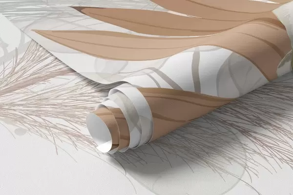 Fototapeedid Pampasrohi, eukalüptus, troopilised lehed ja orhideed valgel taustal, pastelltoonides Nr w09366