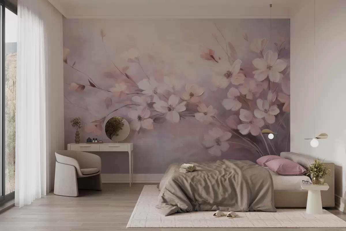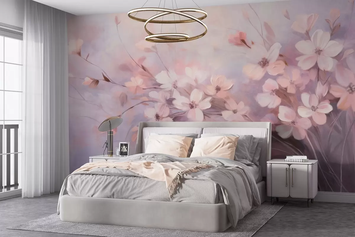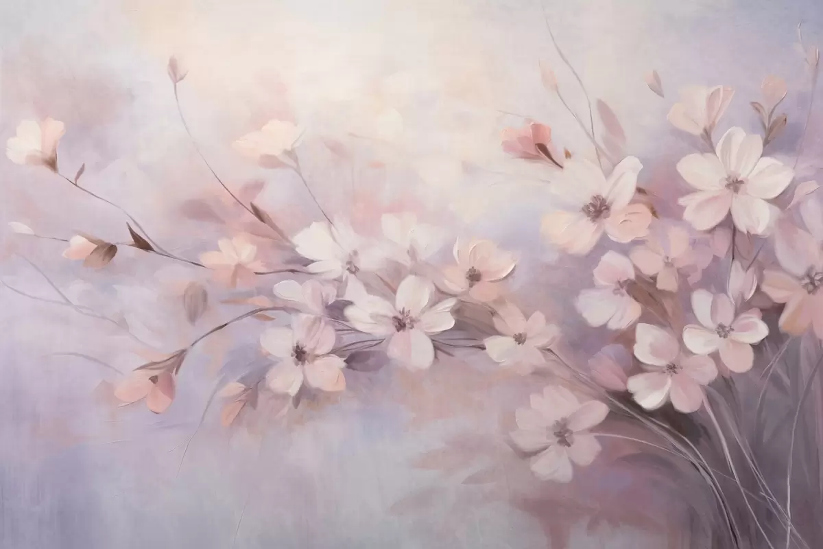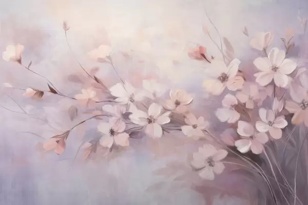Fototapeedid Õrnade, pehmete, häguste servadega õrnade lilledega lilleseade lavendli ja heleroosa toonidega pastelsel taustal Nr w09369