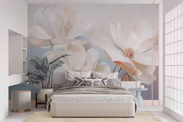 Fototapeedid Valged fantaasiamagnolia õied õrnade tekstuuriga kroonlehtedega, pehme, abstraktne taust Nr w09373