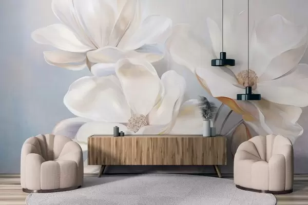 Fototapeedid Valged fantaasiamagnolia õied õrnade tekstuuriga kroonlehtedega, pehme, abstraktne taust Nr w09373