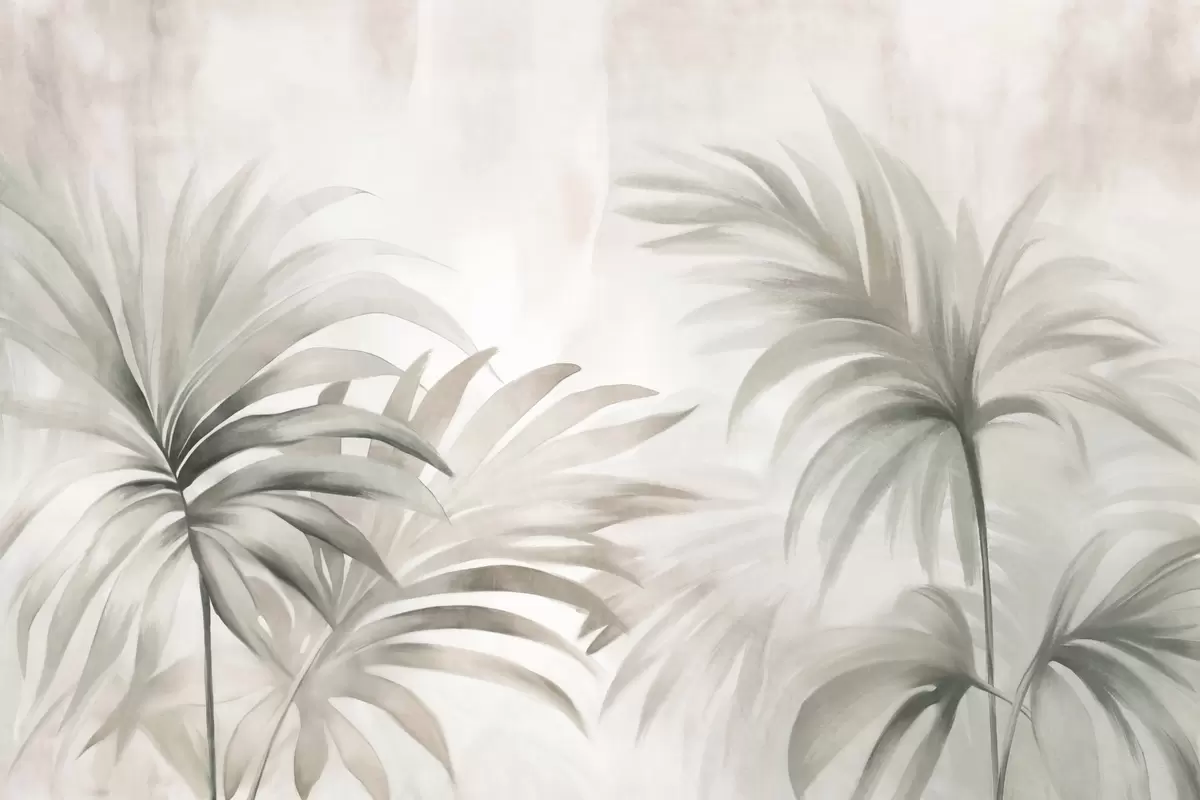 Fototapeedid Palmipuu tekstureeritud lehed neutraalsetes värvides, beež abstraktne taust, pehmed pintslitõmbed, troopiline tekstureeritud lehestik Nr w09380