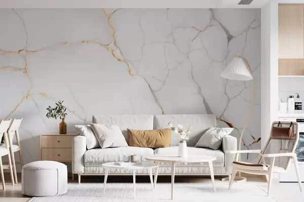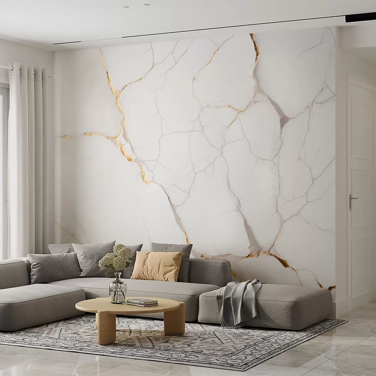 Fototapeedid Marmori imitatsioon peente pragude ja kollaste veenidega Nr w09390
