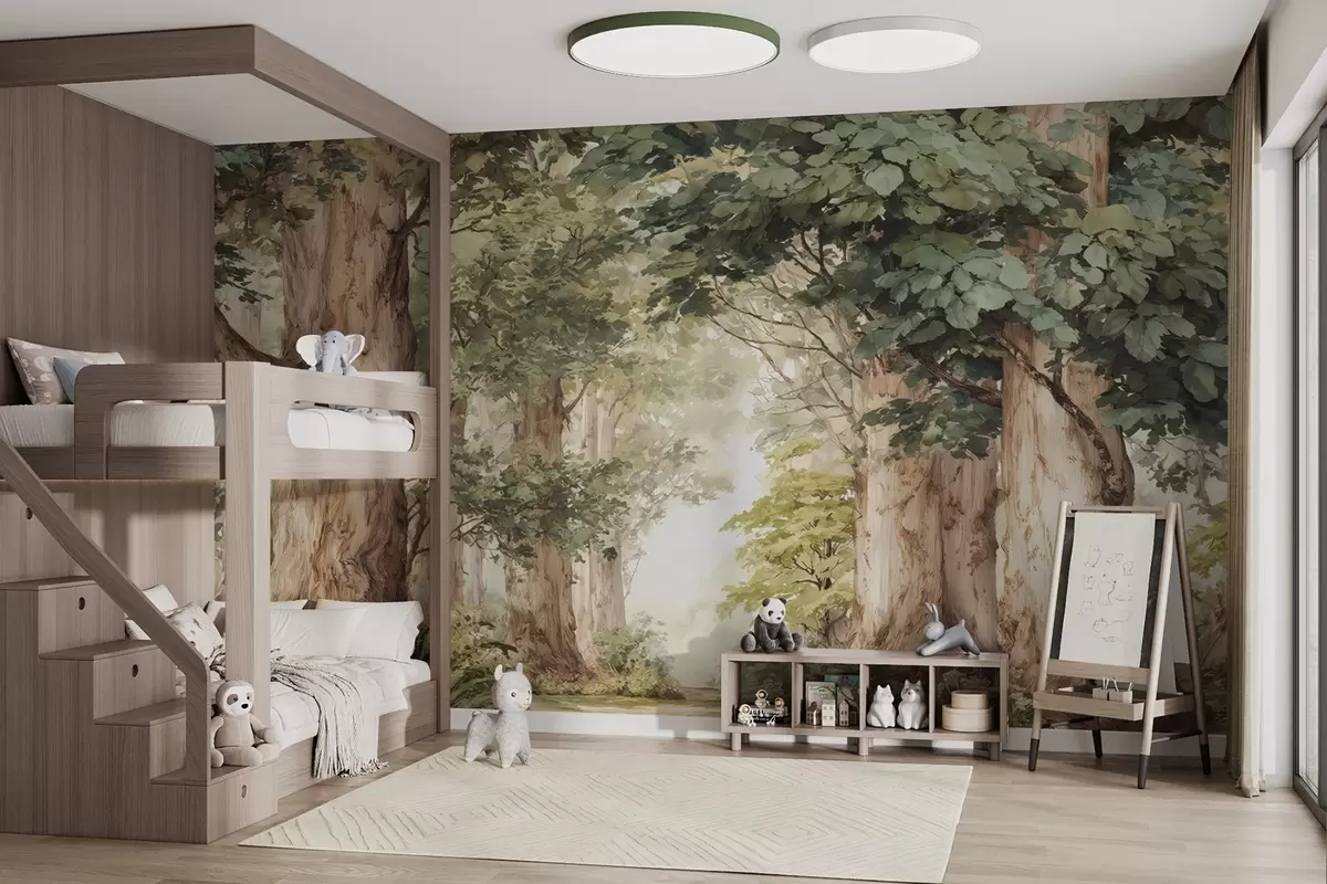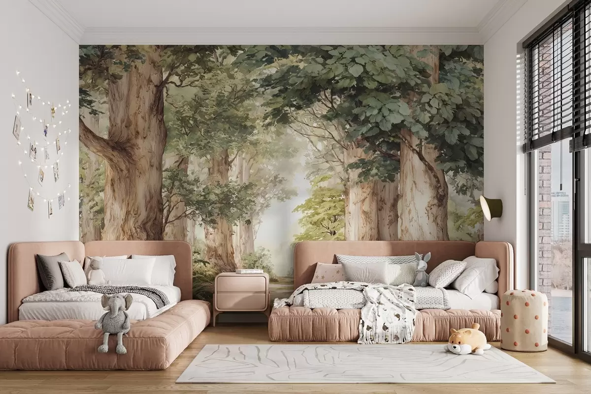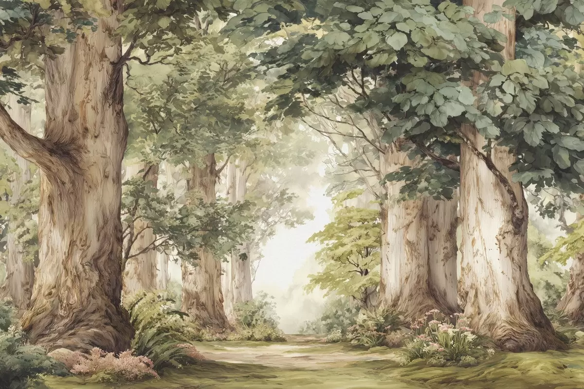 Fototapeedid Metsatee majesteetlike puude vahel akvarellstiilis Nr w09404